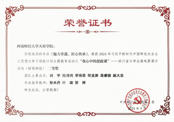 孙木丹作为第一指导老师获得四川省大学生微电影展示活动(短视频组)二等奖